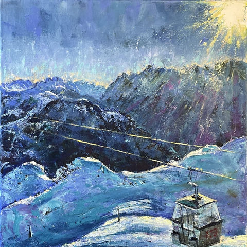 The exhibition ‘Colours of Winter’ is currently on display in La Tzoumaz. Fifteen works are displayed throughout the restaurants Les Trappeurs and Papillon . Come on up and let me know what you think!